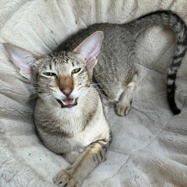 Black Spotted Tabby Bi Colour Oriental Longhair - Former Queen